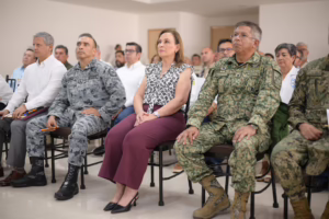 Desde las instalaciones de la Guardia Nacional, y acompañada por integrantes del sector transportista, así como por el coordinador territorial de la Región Golfo de esta corporación, Ignacio Murillo Rodríguez, la Gobernadora participó en la presentación del Operativo Guardianes del Golfo.