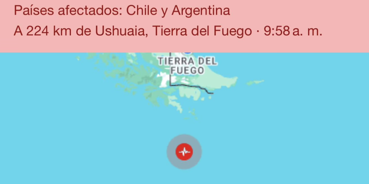 El temblor ocurrió a las 9:58 a.m., hora local, y tuvo una profundidad de 10 kilómetros. De acuerdo con los reportes iniciales, el sismo fue perceptible en varias ciudades de Argentina y Chile, entre ellas Río Grande, Río Gallegos, Punta Arenas y Puerto Natales.