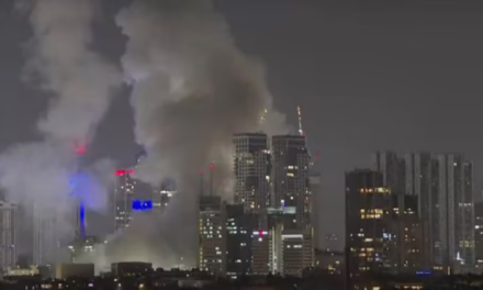 El individuo, que trepaba la torre de 330 metros sin protección, fue rápidamente interceptado y detenido por la policía.