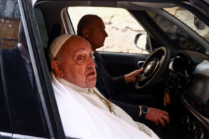 Roma. 17 de abril del 2025.-El papa Francisco ha decidido mantener su tradicional visita a una cárcel en la tarde de Jueves Santo y hoy pasó brevemente por la de ‘Regina Coeli’, en el centro de Roma, pese a estar todavía convaleciente por sus problemas respiratorios.