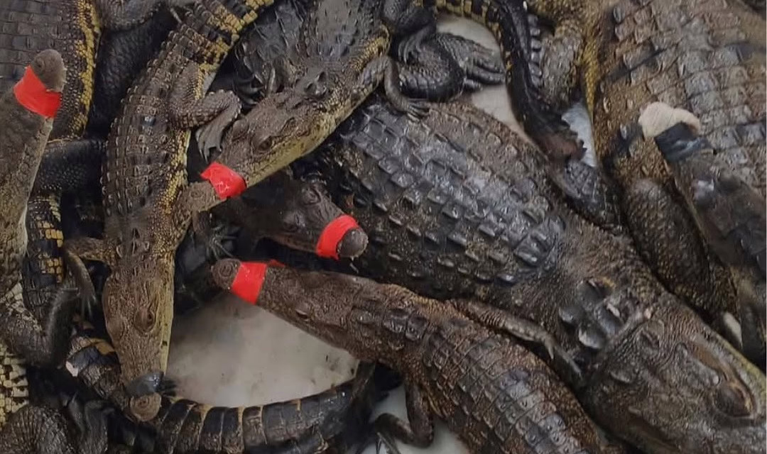 Cocodrilos aprovechan derborde de cuarpos de agua para salir a dar un “paseo”.