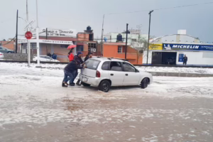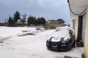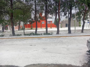 Tlaxcala. 08 de mayo del 2025.-El día de ayer miércoles se registró un intensa granizada en la cabecera municipal de Huamantla y algunas comunidades cercanas.