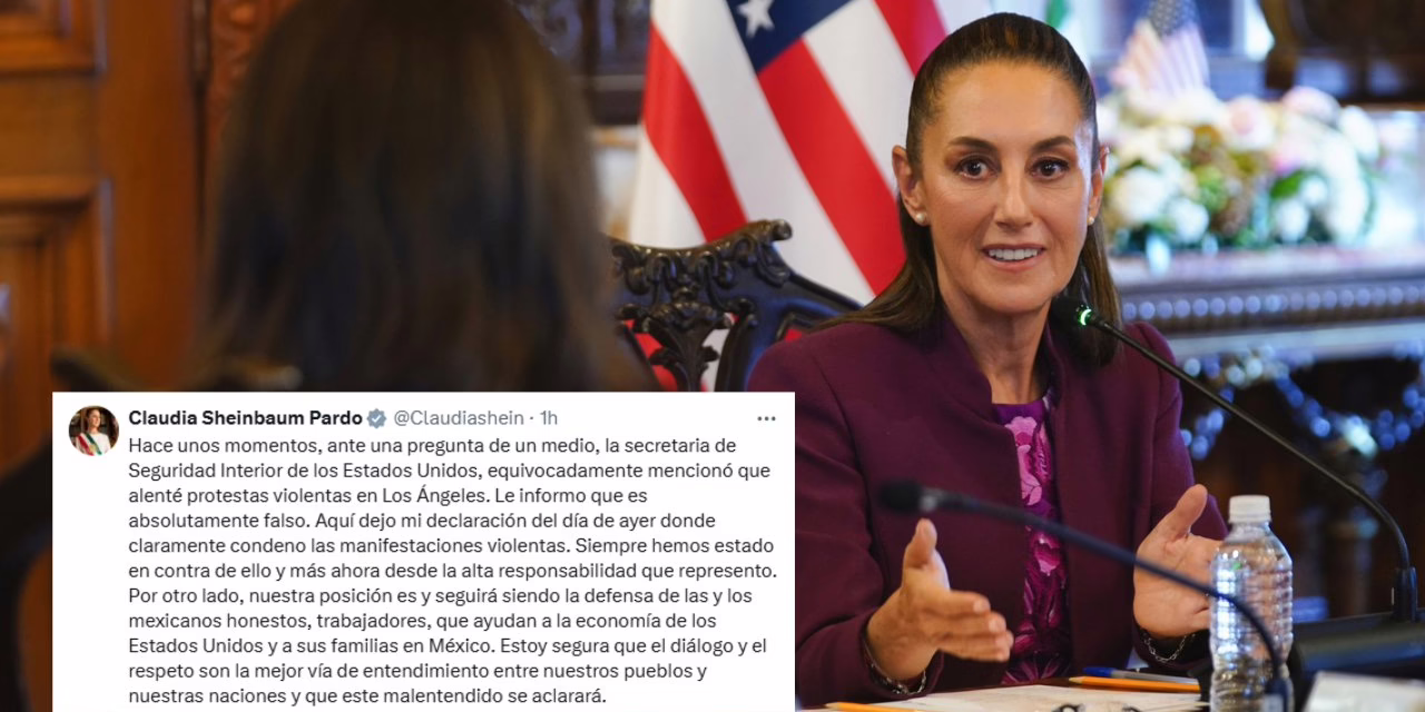México. 10 de junio del 2025.-La Presidenta Claudia Sheinbaum rechazó las acusaciones de Kristi Noem, secretaria de seguridad en Estados Unidos sobre su presunto apoyo a protestas violentas en Los Ángeles.