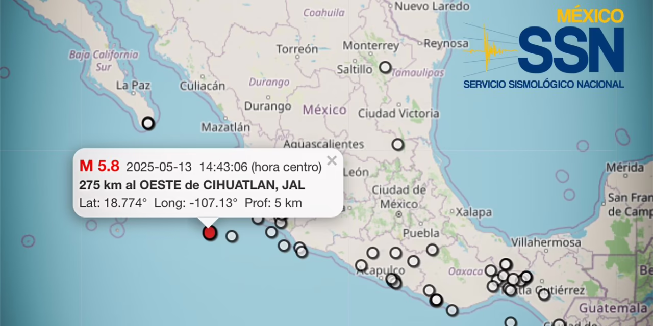 México. 14 de mayo del 2025 –Durante las últimas 24 horas, el Servicio Sismológico Nacional (SSN) registró 45 sismos en distintas regiones del país. Los epicentros se localizaron en estados como Oaxaca, Chiapas, Guerrero, Michoacán, Veracruz, Jalisco, San Luis Potosí, Baja California Sur y Nuevo León.