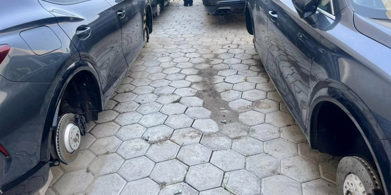 Puebla. 14 de mayo del 2025.-Durante la madrugada de este miércoles robaron las llantas a camionetas de la empresa Cupra que se encontraban resguardadas en un inmueble ubicado sobre la Vía Atlixcáyotl.
