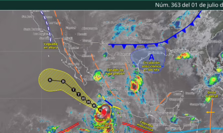 Pacífico Sur: Por la mañana, cielo medio nublado; ambiente fresco a templado, siendo cálido en el istmo de Tehuantepec, zonas de Guerrero y costas de la región. Posibles lluvias y chubascos matutinos. Durante la tarde, ambiente cálido a caluroso; cielo nublado con lluvias puntuales intensas, descargas eléctricas y posible caída de granizo en Guerrero, Oaxaca y Chiapas, las cuales podrían originar el incremento en los niveles de ríos y arroyos, deslaves, inundaciones, encharcamientos y visibilidad reducida. Viento de dirección variable de 50 a 60 km/h con rachas de 70 a 90 km/h en costas de Guerrero, así como vientos de 20 a 30 km/h con rachas de 50 a 70 km/h en costas de Oaxaca, y vientos de 10 a 20 km/h con rachas de 40 a 60 km/h en Chiapas. Oleaje de 4.5 a 5.5 metros de altura en costas de Guerrero y Oaxaca, y oleaje de 3.5 a 4.5 metros de altura en costas de Chiapas.