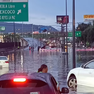 México. 15 de septiembre del 2025.-Tras las intensas lluvias de este domingo 14 de septiembre, el Puente de la Concordia en Calzada Ignacio Zaragoza, Iztapalapa, quedó totalmente inundado.