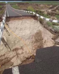 Baja California. 15 de septiembre del 2025.-Este lunes se registró un accidente y se reporta el colapso del puente Vizcaíno – San Ignacio, en las inmediaciones del retén militar en Baja California Sur.