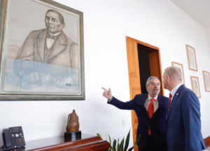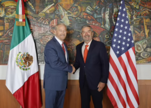 México.- 16 de mayo del 2025.-El canciller Juan Ramón de la Fuente sostuvo una reunión con el embajador designado de Estados Unidos en México, Ronald Johnson. A un día de su llegada a nuestro país, realizó una visita de cortesía a la SRE.