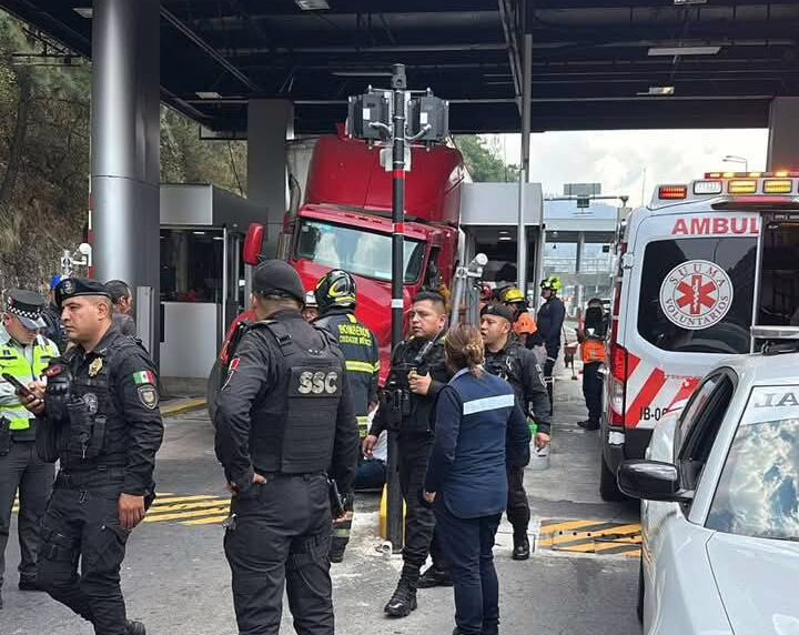 México. 22 de abril del 2025.-Este martes, un aparatoso accidente se registró en la caseta de la autopista México-Toluca, donde un tráiler que circulaba en dirección a la CdMx perdió el control y se impactó contra la caseta de cobro ubicada en el kilómetro 24, en la zona de La Venta, dentro de la alcaldía Cuajimalpa.