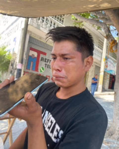 Denunciaron que el joven solo intentaba ganarse la vida dignamente y fue víctima de una agresión injustificada, ya que q los dueños de un local de refrigeración les molesta que Missael se ponga a vender en la calle, en donde ya tiene 10 años vendiendo su fruta.