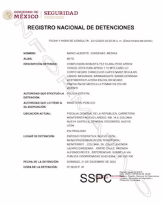 México. 22 de diciembre del 2025.-Tres hombres armados y con droga, entre ellos ‘El Betito’, sobrino de Osiel Cárdenas Guillén, exlíder del Cártel del Golfo, fueron detenidos en sur de Monterrey, Nuevo León.