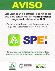 México. 24 de octubre del 2025.-Esta tarde, diversas instituciones bancarias y financieras informaron a la comunidad de usuarios que por motivos de mantenimiento el Sistema de Pagos Electrónicos SPEI, suspenderá operaciones.