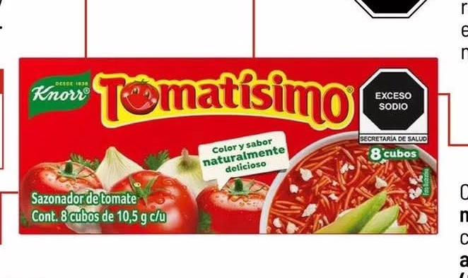 “De acuerdo con la recomendación establecida por la Organización Mundial de la Salud (OMS), un cubo de Tomatísimo cubre 131% del sodio total diario recomendado para adultos y 174% para niñas y niños”, explicó El Poder del Consumidor.