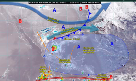 caída de granizo en zonas con lluvia, ambiente caluroso, y muy caluroso en el noroeste de Sonora. Habrá viento de componente oeste de 10 a 25 km/h, con rachas