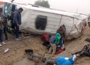 Estado de México. 31 de diciembre del 2025.- Al menos 13 personas resultaron heridas por la volcadura de una camioneta de transporte público sobre el Circuito Exterior Mexiquense, a la altura del municipio de Jaltenco durante las primeras horas del día de este miércoles, derivado de este siniestro autoridades de emergencia desplegaron un operativo de apoyo a los afectados.