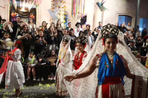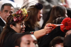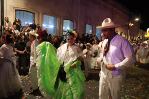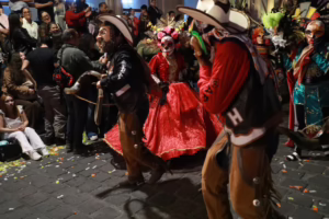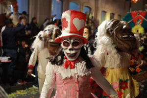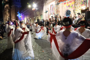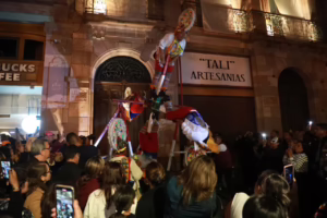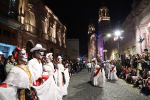 Oscar Gómez Tascalteco, integrante de la Cuadrilla de Payasos Mazahuanes de Xico, expresó su orgullo por representar a Veracruz en esta celebración nacional, “me siento alegre y afortunado de mostrar nuestras costumbres y tradiciones. Nosotros bailamos para honrar a las imágenes religiosas, y esta participación es también un homenaje a nuestros fieles difuntos”.