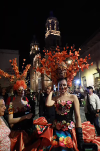 Las calles se llenaron de comparsas de catrinas y catrines, carros alegóricos, música en vivo, alebrijes y esculturas móviles, en un ambiente de respeto y admiración por las tradiciones que dan identidad al pueblo mexicano.