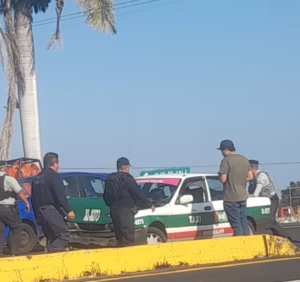 ​El incidente ocurrió en el carril con dirección a la capital veracruzana, a la altura de la zona de Miradores, en las inmediaciones del Club de Golf. Según los reportes en el lugar, el taxi marcado con el número económico XL-8273 colisionó contra la patrulla.