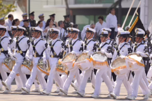 Participaron 3 mil 871 efectivos de los cuerpos, servicios y escalas de las diferentes Fuerzas, Regiones y Zonas Navales, así como del Sistema Educativo Naval, quienes abrieron paso con la bandera de Torrotito, símbolo de la identidad naval mexicana.
