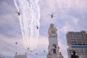 Las actividades iniciaron con un ejercicio de demostración alusivo al Plan Marina, que puso de manifiesto la capacidad de respuesta inmediata ante desastres naturales y emergencias; más tarde, tuvo lugar el desfile militar que recorrió la Macroplaza del Malecón.