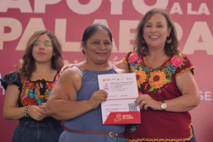 Durante su mensaje, destacó que este año se destinó una bolsa de 100 millones de pesos para el programa, con la meta de duplicar la inversión en 2026, llegando a más emprendedoras y emprendedores; al recibir sus apoyos, Luz María del Carmen Higinio, Verónica Pérez Toledo y Mireya Domínguez Ceferino reafirmaron su compromiso de invertir en proyectos productivos que fortalezcan a sus comunidades.