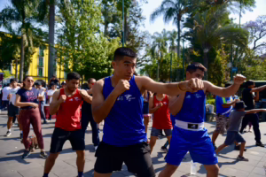 Xalapa, Ver., domingo 06 de abril de 2025.- Alrededor de mil personas se reunieron en el parque Juárez como parte de la Clase Nacional de Boxeo, actividad a la que se sumó el Gobierno de Veracruz, a través de la Secretaría de Educación de Veracruz y el Instituto Veracruzano del Deporte (IVD), en el marco de la Estrategia Nacional de Seguridad, dentro del eje de Atención a las Causas.