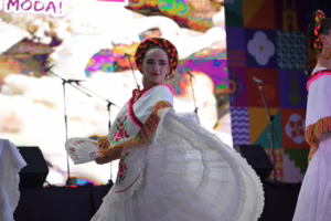 El espectáculo estuvo a cargo del Ballet de la Licenciatura en Danza Folklórica Mexicana, reconocido como un espacio artístico y académico donde los estudiantes aplican sus conocimientos en escena.