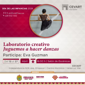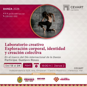 Xalapa, Ver., martes 07 de abril de 2026.- La Secretaría de Cultura de Veracruz (SECVER) invita a la serie de laboratorios creativos y seminarios en torno a la danza, que se llevarán a cabo en el Centro Veracruzano de las Artes Hugo Argüelles (CEVART), en la ciudad de Veracruz, en el marco del Día Internacional de la Danza. La entrada es libre.