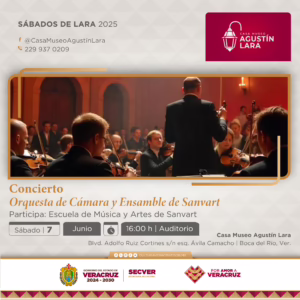 Xalapa, Ver., viernes 06 de junio de 2025.- La Secretaría de Cultura de Veracruz (SECVER) invita a público en general a asistir a los conciertos de la programación mensual Sábados de Lara que se realizará durante el mes de junio en el Auditorio de la Casa Museo Agustín Lara, en Boca del Río. La entrada es gratuita.