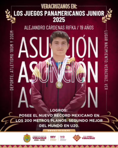 Boca del Río, Ver., jueves 07 de agosto de 2025.- Siete atletas veracruzanos representarán a México en los Juegos Panamericanos Junior, del 09 al 23 de agosto en Asunción, Paraguay, una muestra más del talento deportivo que florece en la entidad y que hoy se proyecta en el plano internacional.