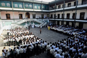 Xalapa, Ver., lunes 09 de marzo de 2026.- La Secretaría de Educación de Veracruz (SEV) realizó el Lunes Cívico en el Colegio Preparatorio de Xalapa, donde destacó el papel de las y los jóvenes como promotores de la cultura de paz, el respeto y el diálogo dentro de la comunidad escolar.