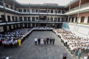 Ante estudiantes y docentes del turno matutino, encabezados por el director Eduardo García Ortiz, la secretaria Claudia Tello Espinosa exhortó al alumnado a aprovechar las oportunidades de estudio y a contribuir a la construcción de entornos de convivencia pacífica.
