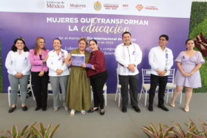 En la explanada de la dependencia, a través de la Coordinación para la Difusión y Optimización de los Servicios Educativos y la Unidad de Género, recibieron el reconocimiento Mujeres que transforman la educación, que distingue el liderazgo, la vocación y el compromiso de las galardonadas.