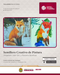 Estas actividades están a cargo de docentes con experiencia en sus respectivas áreas. Para más información sobre estas y otras actividades en el recinto, consulta las redes sociales @CentroCulturalCoatepec y la cuenta de @SECVEROficial.