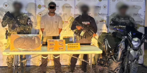 Asimismo, autoridades aseguraron una motocicleta con 10 dosis de hierba verde con características de la marihuana y una camioneta sin reporte de robo.