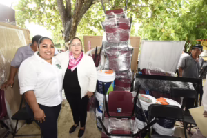 Tlalixcoyan, Ver., jueves 11 de septiembre de 2025.- En cumplimiento al compromiso de dignificar los espacios educativos, la Secretaría de Educación de Veracruz (SEV) entregó pintura, sillas, mesas trapezoidales, pintarrones blancos e impermeabilizante a 11 escuelas y una Supervisión Escolar.