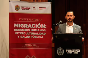 Xalapa, Ver., jueves 11 de diciembre de 2025.- La Secretaría de Salud (SS) realizó el conversatorio Migración: derechos humanos, interculturalidad y salud pública, para fortalecer la colaboración institucional en beneficio de la niñez, la adolescencia y las personas adultas en condiciones de vulnerabilidad durante su trayecto migratorio.