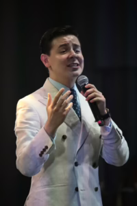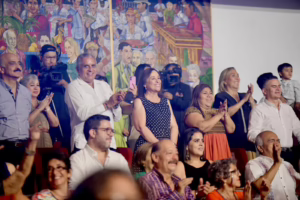 Uno de los momentos más emotivos de la noche fue la interpretación de Nuestro juramento, del ruiseñor de América, Julio Jaramillo, en voz de su hijo Julián y su nieto Julio, como homenaje a la gobernadora Rocío Nahle García.