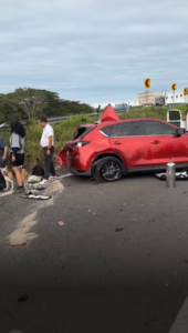 Veracruz. 13 de enero del 2026.-La tarde de este martes se registró un accidente de tránsito en la entrada hacia la ciudad de Cardel, luego de que el remolque de un tráiler se desprendiera de la unidad principal, terminando por impactar a una camioneta marca Mazda color rojo que circulaba por la zona.
