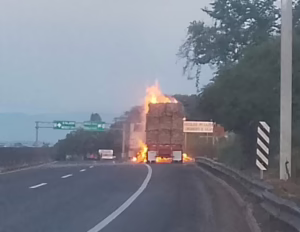 El incidente ocurrió a la altura de la localidad de Corral Falso, donde el remolque de la unidad de carga pesada comenzó a arder. Las llamas rápidamente consumieron parte de la estructura, lo que obligó a detener por completo el tránsito en la vialidad.