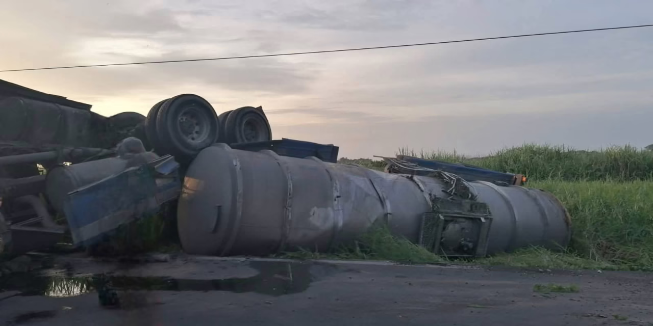 Veracruz. 14 de julio del 2025. – Esta mañana se registró la volcadura de un tráiler auto-tanque que transportaba sobre la carretera Las Matas, a la altura de la colonia Congreso, en dirección a Coatzacoalcos.