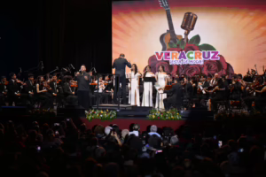 La Gobernadora entregó un reconocimiento simbólico a Rodrigo de la Cadena, director artístico del Festival y responsable de los arreglos musicales que dieron forma al espectáculo final, además confirmó la continuidad en las dos sedes que lo vieron nacer: Veracruz y Tlacotalapan.