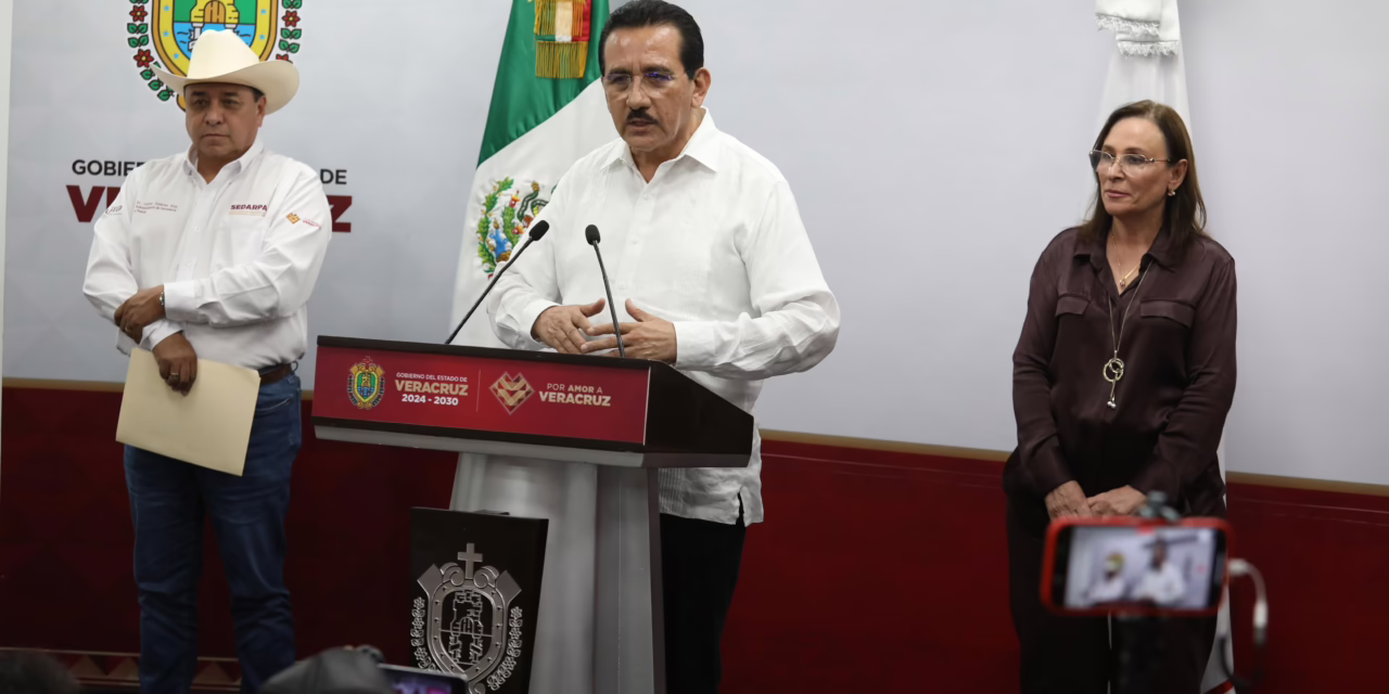 Durante la conferencia de prensa encabezada por la gobernadora Rocío Nahle García, el secretario de Desarrollo Agropecuario, Rural y Pesaca (Sedarpa), Rodrigo Calderón Salas, recordó que desde diciembre, iniciaron acciones inmediatas en coordinación con Senasica, al detectarse los primeros casos en el sur de México, tras su ingreso por Chiapas.
