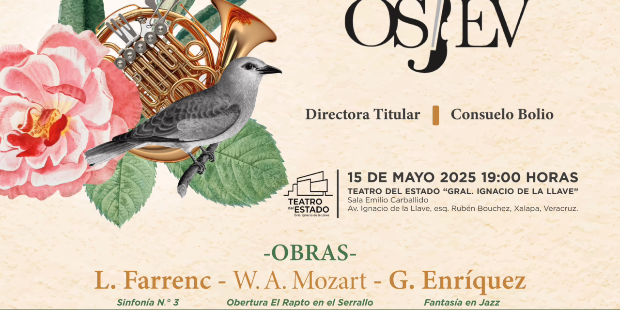 Xalapa, Ver., miércoles 14 de mayo de 2025.- La Secretaría de Educación de Veracruz (SEV), en colaboración con la Secretaría de Cultura (SECVER), invita al Tercer Concierto Temporada 2025 de la Orquesta Sinfónica Juvenil del Estado de Veracruz (OSJEV), que se realizará este jueves 15 de mayo, a las 19:00 horas, en la sala Emilio Carballido del Teatro del Estado.