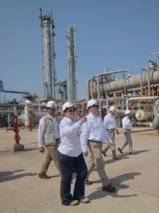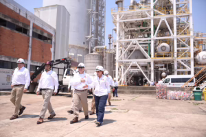 Para ello encabezaron el recorrido junto con funcionarios federales y estatales por el Complejo Petroquímico Cangrejera, cuya planta de etileno genera mil 700 toneladas diarias de productos derivados del etileno.