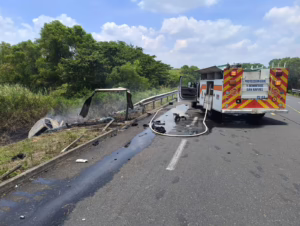 Veracruz. 15 de agosto del 2025.-Este viernes se registró un lamentable accidente en la autopista Poza Rica–Cardel, a la altura del kilómetro 69, en el tramo Paso Largo–Totomoxtle.