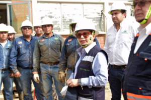 Acompañada por el Subdirector de Generación, Javier Maldonado Ramos, y el subdirector de Distribución, Gustavo García Huirache, Calleja Alor sostuvo reuniones con el personal de los distintos centros de trabajo, a quienes agradeció su compromiso y esfuerzo para mantener la continuidad del servicio eléctrico a pesar de las condiciones climatológicas adversas.
