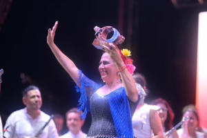 El repertorio incluyó piezas emblemáticas como Dios me señaló, Te solté la rienda, El último trago y un popurrí de clásicos que desató coros multitudinarios. El público, entusiasta, pidió un encore y la soprano respondió con Caminos de Guanajuato y una segunda interpretación de Si nos dejan, cerrando su presentación en un ambiente de euforia colectiva.