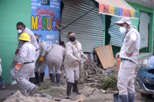 De igual forma, informó que se mantiene una operación aérea y terrestre sin precedentes en la región, con 17 aeronaves realizando vuelos humanitarios para trasladar alimentos, agua y medicamentos a comunidades incomunicadas en la Sierra de Huayacocotla, así como para evacuar a mujeres embarazadas, personas enfermas y adultos mayores.